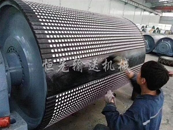 傳動(dòng)滾筒是輸送機(jī)傳遞動(dòng)力的部件。傳動(dòng)滾筒表面有裸露光鋼面,人字形和菱形花紋橡膠覆面。小功率、小帶寬及環(huán)境干燥時(shí)可采用裸露光鋼面。人字形花紋膠面摩擦系數(shù)大,防滑性和排水性好,但有方向性。菱形膠面用于雙向運(yùn)行的輸送機(jī)。