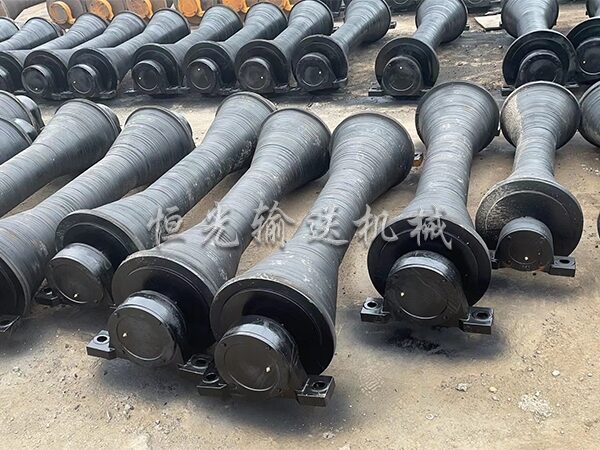 傳動滾筒是輸送機傳遞動力的部件。傳動滾筒表面有裸露光鋼面,人字形和菱形花紋橡膠覆面。小功率、小帶寬及環(huán)境干燥時可采用裸露光鋼面。人字形花紋膠面摩擦系數(shù)大,防滑性和排水性好,但有方向性。菱形膠面用于雙向運行的輸送機。