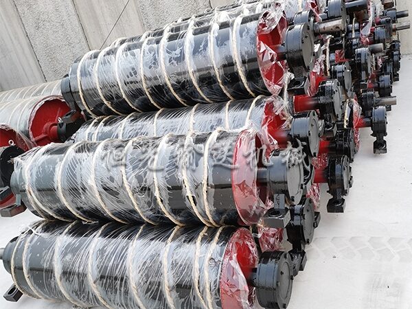 傳動(dòng)滾筒是輸送機(jī)傳遞動(dòng)力的部件。傳動(dòng)滾筒表面有裸露光鋼面,人字形和菱形花紋橡膠覆面。小功率、小帶寬及環(huán)境干燥時(shí)可采用裸露光鋼面。人字形花紋膠面摩擦系數(shù)大,防滑性和排水性好,但有方向性。菱形膠面用于雙向運(yùn)行的輸送機(jī)。