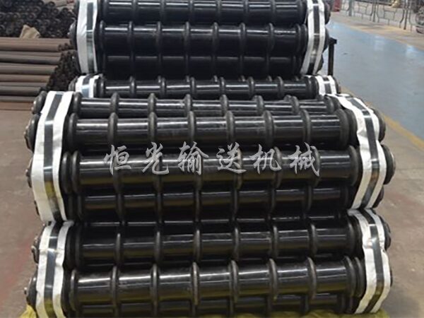 梳型托輥上套有硬橡膠圈,對(duì)防止輸送帶跑偏和清掃有很大的作用!專用于輸送粘性物料的輸送機(jī)使用。